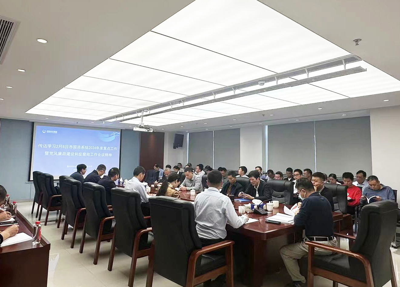 會議首先由公司黨委書記、董事長鄭海強傳達2月8日市國資系統(tǒng)2024年度重點工作暨黨風(fēng)廉政建設(shè)和反腐敗工作會議精神。市國資委葉育強主任在會上系統(tǒng)總結(jié)了國資系統(tǒng)2023年工作情況,并從服務(wù)發(fā)展、改革攻堅、運營提效、黨建引領(lǐng)、全面從嚴治黨等五個方面提出了2024年工作思路和要求。