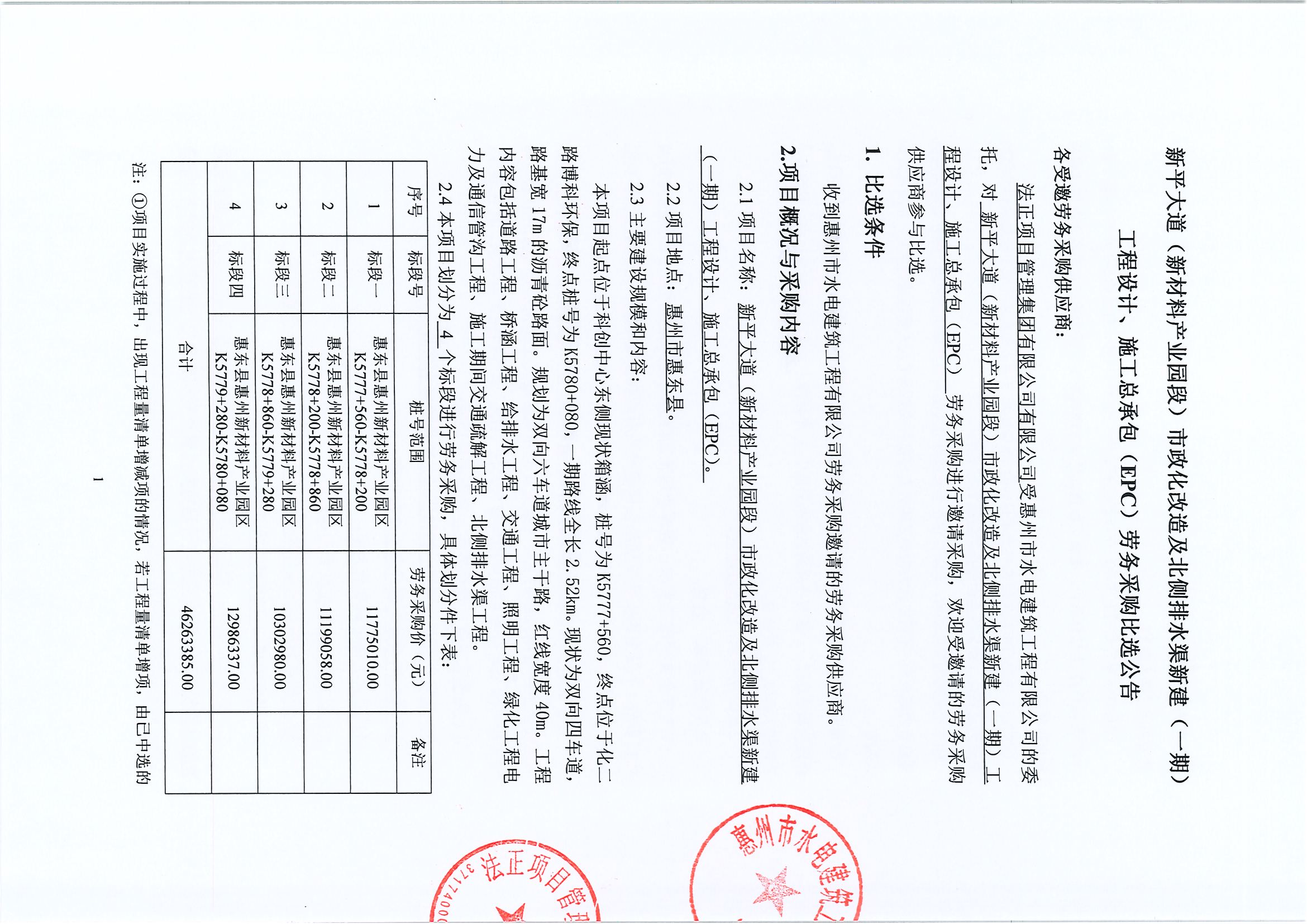新平大道(新材料產(chǎn)業(yè)園段)市政化改造及北側(cè)排水渠新建(一期)工程設計、施工總承包(EPC)勞務采購比選公告
