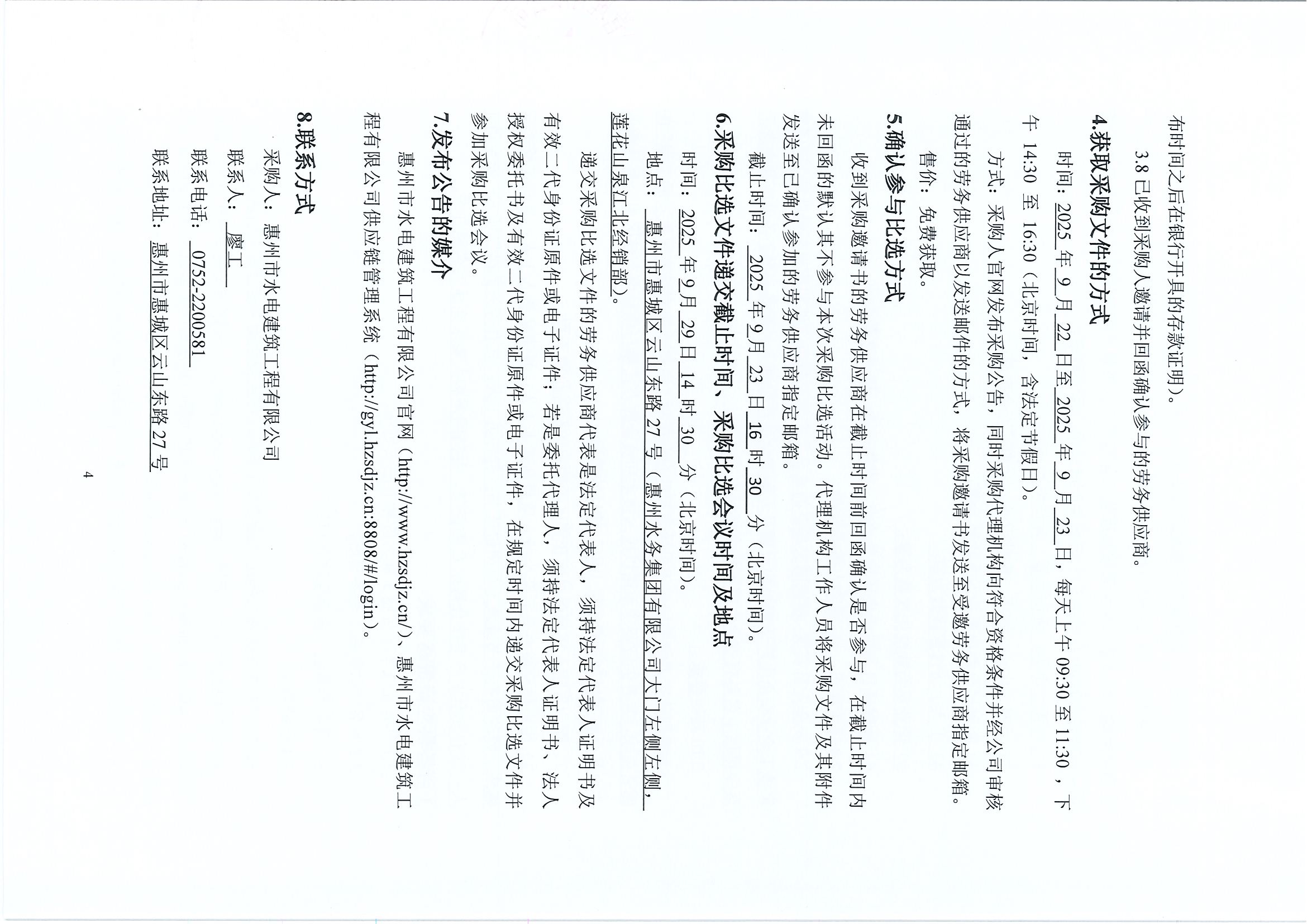 惠州市市政供水管網(wǎng)改造項(xiàng)目(含惠城區(qū)、仲愷高新區(qū)、惠陽(yáng)區(qū))施工勞務(wù)采購(gòu)中選候選人公示