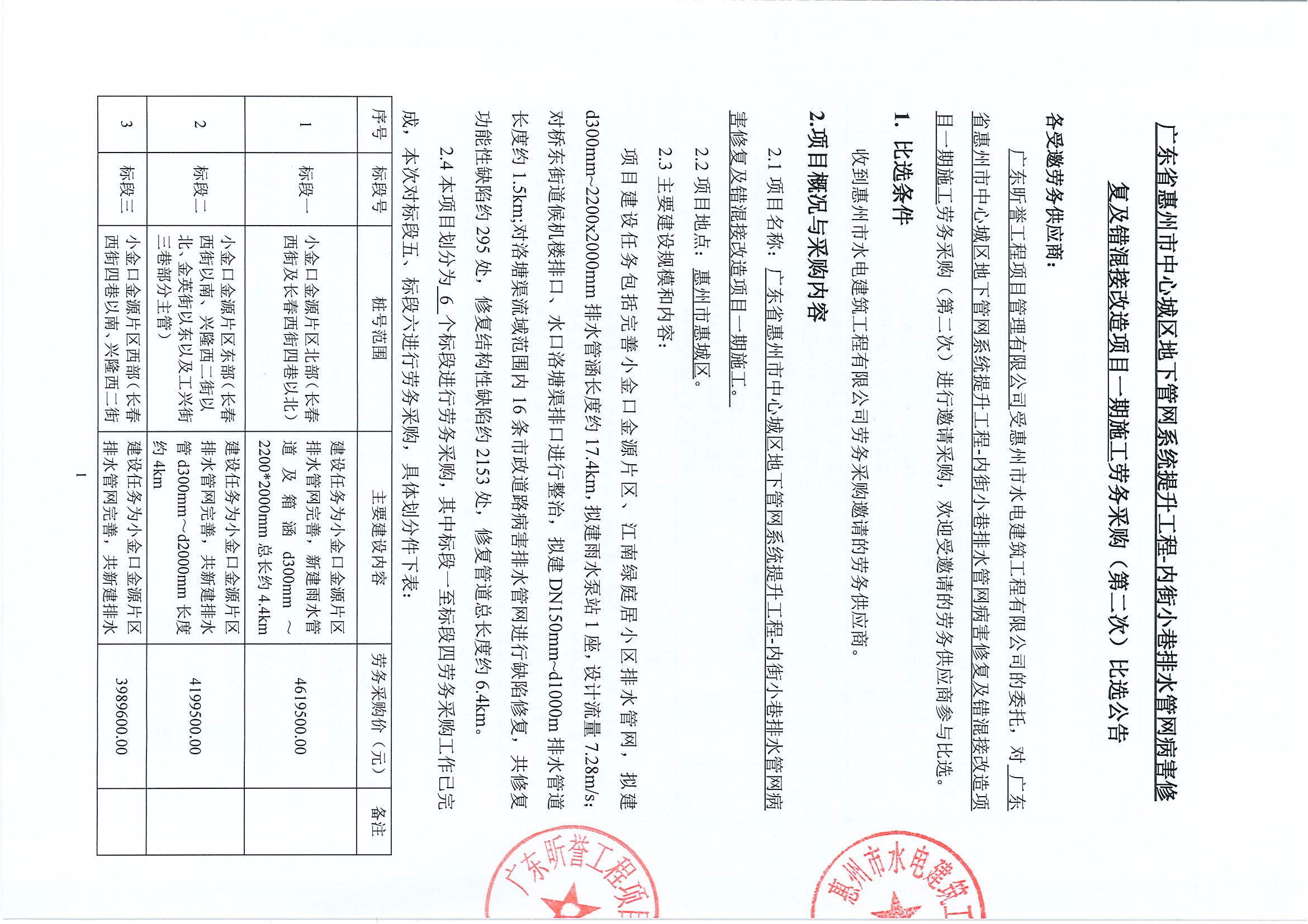 廣東省惠州市中心城區(qū)地下管網(wǎng)系統(tǒng)提升工程-內(nèi)街小巷排水管網(wǎng)病害修復(fù)及錯(cuò)混接改造項(xiàng)目一期施工勞務(wù)采購中選候選人公示