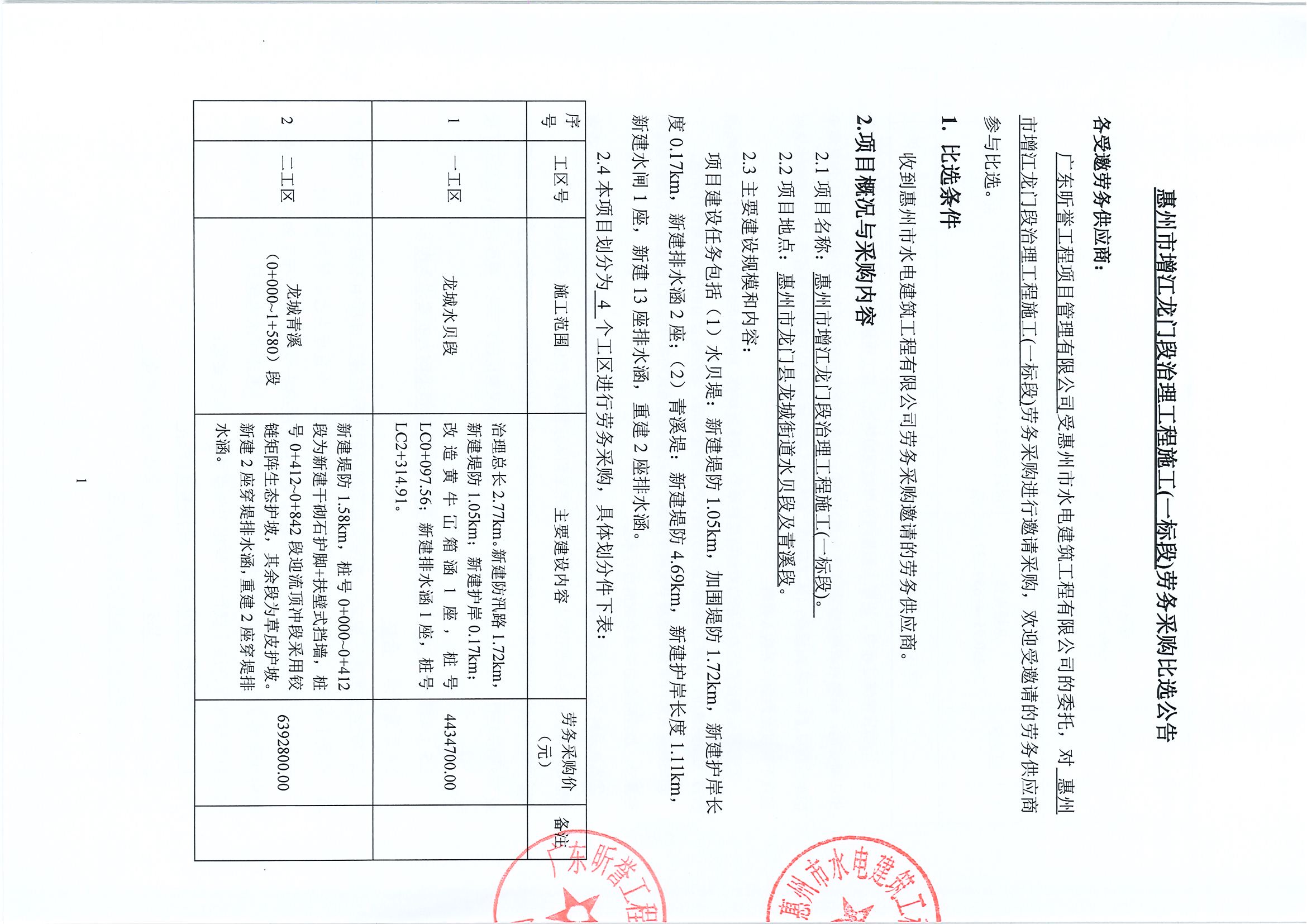 惠州市增江龍門段治理工程施工(一標段)勞務采購比選公告