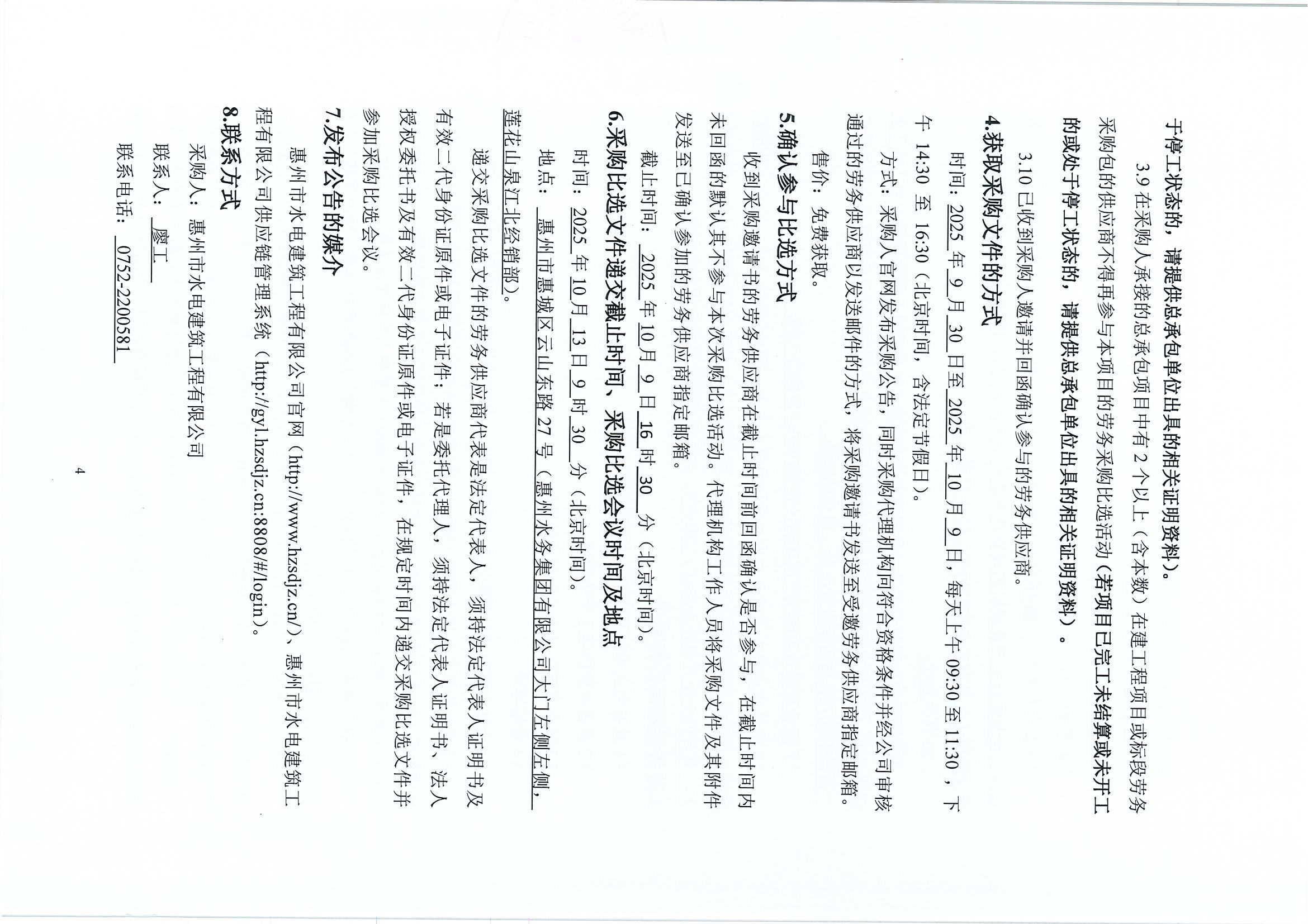 惠州市增江龍門段治理工程施工(一標段)勞務采購中選候選人公示