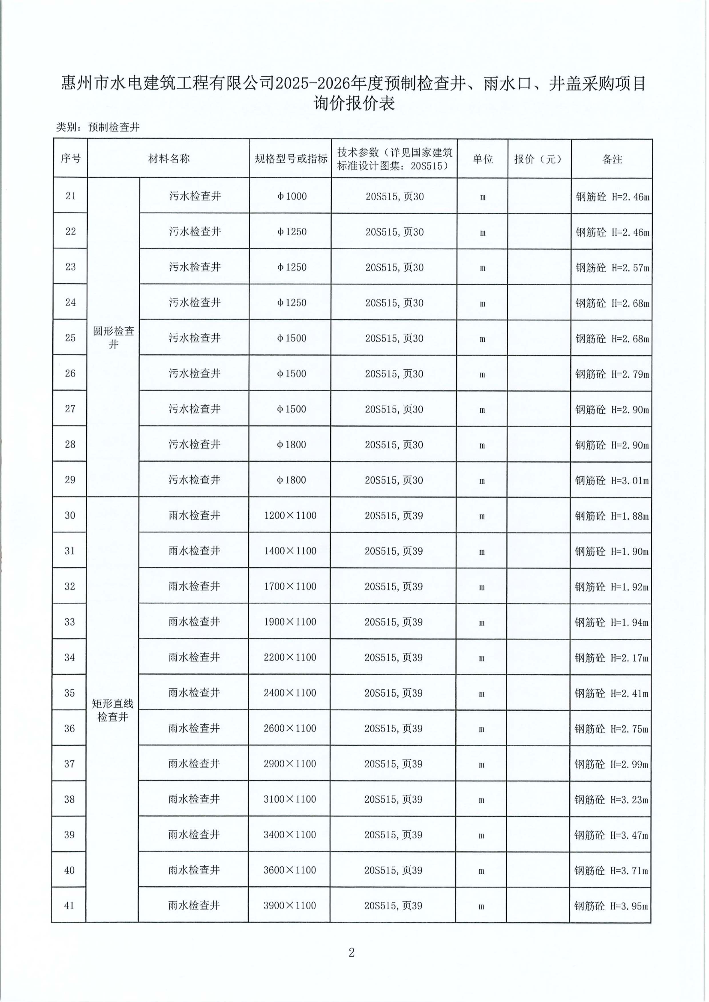 惠州市水電建筑工程有限公司2025-2026年度預(yù)制檢查井、雨水口、井蓋采購項目詢價公告附件: